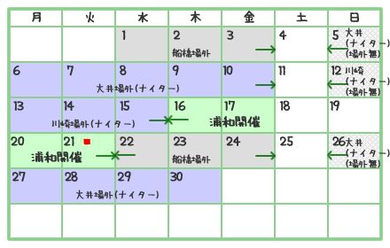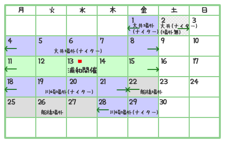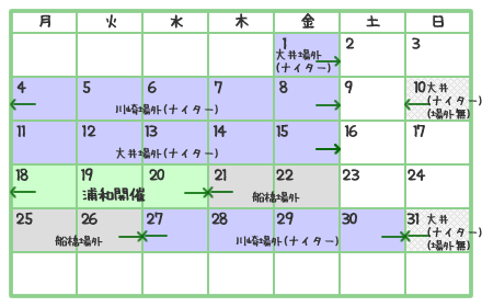 南関東競馬場(浦和、大井、川崎、船橋)にて開催される競馬の日程表です。