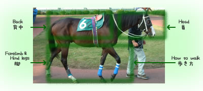パドックでは、さまざまな角度で馬を見て、気に入った馬を探すことができます。